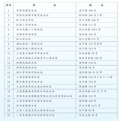 夏季虹口区各类游泳场所开放一览表