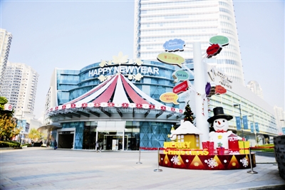 眼下,尽管距离圣诞、元旦节尚有时日,但四川北路商业街沿线商家已纷纷搭起缤纷街景,为迎接节日营造氛围。(图为中信泰富·申虹广场外节庆街景绚丽夺目。)沈春琛 摄