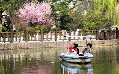图为市民在公园坐船享受休闲时光。 袁 杰 摄影报道