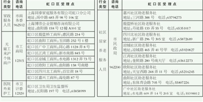 10、虹口区相关行业出具行业“灵活就业证明”受理点目录