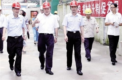 区人大常委会主任颜建平(左二)视察区法院再建的审判大楼工地