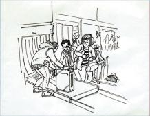 有一次,妈妈接我放学回家,看见大家都非常有秩序地排队,我也学着排在队伍的最后,车来了,我们一个接一个,很快就上车了。我个子小,哥哥还让了一个空位给我坐,妈妈和我连说“谢谢”。陌生人就像一家人一样友好,我很开心。这次,我就以这个故事作为我的画面主题,告诉每一个小朋友遵守规则、养成文明好习惯很重要。