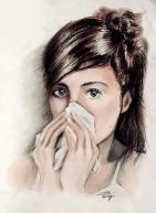 在这次“好习惯,翻翻看”主题活动中,我选取了生活中一个最常见的行为“打喷嚏”作为我的绘画素材。打喷嚏,看来事小,却关乎个人修养。打喷嚏时回避他人,用手捂一下,以防污物扩散,都属基本礼仪,可惜的是,日常生活中,很多人对此都感到不以为然,直接对着地面打喷嚏,甚至毫无遮拦地对着人脸放出“一记爆破音”,既不礼貌且不卫生。一个正常人的喷嚏中包含着30万个细菌,可见,对着人打喷嚏不捂,细菌的传播量是相当可观的。我绘制这幅作品的初衷即是希望能够提醒观者,喷嚏也讲礼仪,手捂一下,回避他人,既是为了礼节,也是为了他人健康。习惯无大小,尤以卫生习惯为甚。