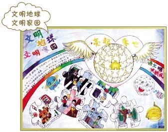 这次我有幸参加“创上海市文明城区,建文明虹口幸福家园”绘画征稿活动,让我懂得了很多文明行为的道理,比如过马路要牵着大人的手走斑马线,安全第一;乘手扶电梯尽量靠右站,方便别人通行;坐地铁的时候要先下后上,互相谦让。