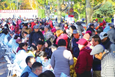 ⑺鲁迅公园内,前来维修、咨询的人群越发多了起来,偌大的广场被挤得满满当当。