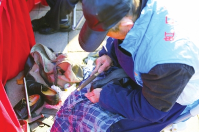 “师傅,阁只还能修伐?”从家里拎来的旧物件、闲置品,弃之不舍,摆放在了摊位桌上,望维修师傅能再次妙手回春。“来来,吾帮侬看看哦!”老匠人们带着毕生“绝活”和陪伴了他们多年的手艺工具,认真、仔细地绑绑、敲敲、弄弄,一会儿工夫,好了。