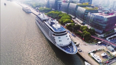据悉,银影号上的游客将参观下海庙、上海犹太难民纪念馆、豫园等地。图为银影号停靠上港码头 刘文摄