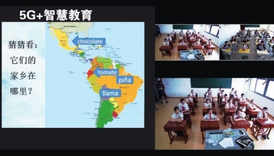 5G+智慧教育:上外附中东校利用双千兆技术,发挥多语种辐射效应,突破地域界限,与云南文山云师大丘北附中连线授课,分享上海优质教育资源和教学方式。响应国家“一带一路”倡议,启发对口帮扶地区学生对第二语种与多元文化的兴趣,助力培养国际型预备人才。实现“双师课堂远程共享”。