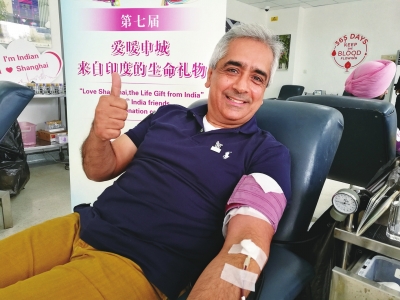 57岁的奥威克是在沪印度友人无偿献血活动中的“元老级”人物,从2013年起,他每年都会向临床患者无偿献血,送去生命的希望。今年,他更是捐献了自该活动举办以来的第1000单位鲜血。奥威克说,能够成为第一千(单位)捐血者,他感到很荣幸,上海是他的第二故乡,感谢上海。和奥威克一样,有着中国名字的印度商人谭鹏也连续多年在上海市血液中心奉献爱心。他告诉记者,曾经为了能顺利通过献血前的检查,特地将体重从103公斤减到了88公斤,无偿献血也让他意识到健康的重要性。如今,健康的生活方式也让他有了一个新的身份,健身房的身材管理师,他希望未来自己也能坚持无偿献血和健康事业。