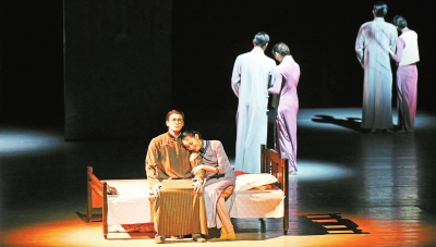 第二幕“弄堂旗袍舞”是整剧的华彩段落,女演员们摇着蒲扇,伴着《渔光曲》起舞。作曲杨帆选择对上世纪30年代电影《渔光曲》中的主题曲进行再创作,既怀旧又新颖。这样一个美好的段落,竟让不少年轻观众看得泪流满面。