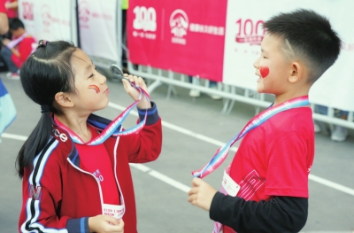 ⑴ 开跑前,虹口足球场早已人潮涌动,小伙伴们蓄势待发。