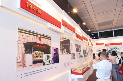 序厅中,一声启航的汽笛声,带领观众穿越时空,回到百年前的虹口汇山码头, 下转4版 (上接1版)目送有志青年登上“因幡丸”邮轮,奔赴留法勤工俭学的征途,最终成为中国共产党人。随后,观众们穿过广吉里的石库门,来到中共四大的会场场景中。在工作人员和旁白的引导下,观众们全情投入到展览体验当中,共同完成了一段穿越时空的特别体验。