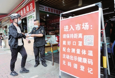 郭芳首先来到奎照菜场,检查农贸市场疫情防控工作。菜场门口摆放了醒目的告示牌,提醒市民群众保持距离、戴好口罩、配合测温、出示健康码。“商户是否都接种了疫苗”“菜场能满足周边多少人口买菜需求”,郭芳与商户们亲切交谈后指出,菜场是人员密集场所,要时刻绷紧疫情防控这根弦,落实主体责任,切实做好测量体温、清洁消毒等防疫管控工作。要做好市场调研,在把好安全关的同时,进一步丰富百姓的“菜篮子”。