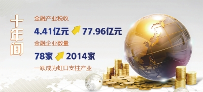 经过十年耕耘,虹口金融已经形成了多元化金融产业集聚的格局,区域金融服务业能级逐步提升,呈现出总量增长迅猛、结构分布合理、风险防范得当的产业发展特点。