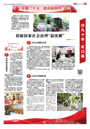 生活垃圾分类源头投放管理考验着社区管理的精细化程度。北外滩街道的党员“三亮”、曲阳路街道的“全岗通周周转”、嘉兴路街道的“三千精神”、四川北路街道的“扫街”“扫楼”,各街道自主发挥党建品牌项目优势,推进基层治理叠加垃圾分类工作,实现垃圾做减量、治理做增量,在“一减一增”中形成了多元共治的垃圾分类管理模式。