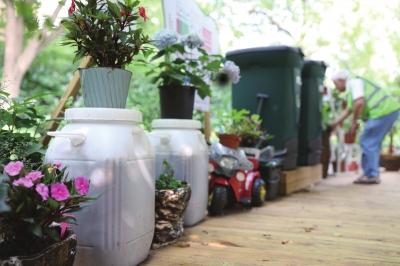 在嘉兴路街道爱家豪庭小区内,有一幢集时尚与科技为一体的“环保小屋”,在这里,土壤下面的“织物层”是用废旧衣物铺出来的,一旁是可以把湿垃圾转化成花草肥料的“堆肥桶”。这方绿意盎然的小天地用“场景化”的呈现方式打造了一个垃圾分类与环保公益的宣传阵地,提升了小区居住品质。