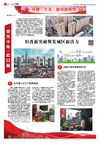 旧改为了人民,旧改依靠人民。被誉为“海派文化发祥地、先进文化策源地、文化名人聚集地”的虹口,也曾是上海危棚简屋最集中、旧改任务最重的老城区之一。虹口区历任领导都高度重视旧改工作,将其列为“虹口最大的民生、最大的发展和盘活城区资源最大的着力点”。党的十八大以来,虹口累计作出征收决定93个,帮助7.5万余户居民搬离旧居。